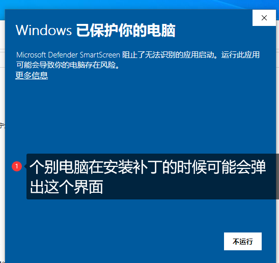 个别win10系统的电脑在安装以上补丁的时候可能会出现拦截,出现如下图所示:
