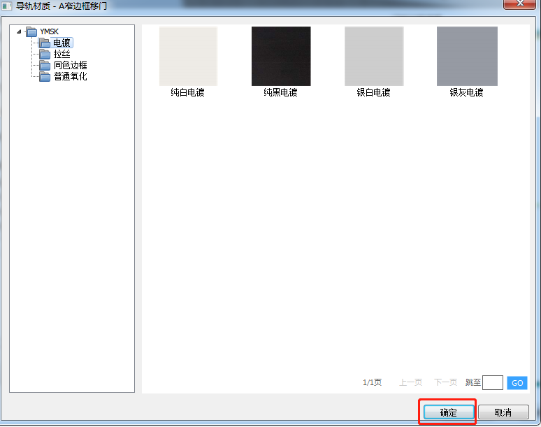 在【导轨材质】界面中选择合适的材质和颜色,点击【确定】即可。
